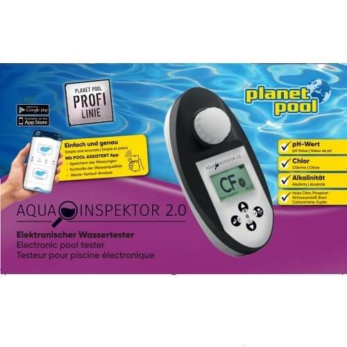 "Aqua inspektor" je elektronski tester za hitro in natančno merjenje parametrov bazenske vode. Merilna posodica je integrirana, tester se potopi v vodo in doda reagentna tabletka. Voda v merilni posodici se obarva. Naprava fotometrično odčita rezultat in ga prikaže na LCD prikazovalniku.
