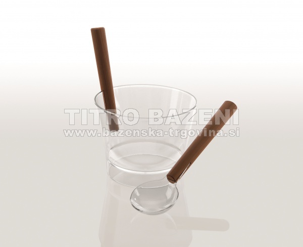 Komplet - polikarbonatni čebriček z lesenim ročajem+zajemalka z lesenim ročajem