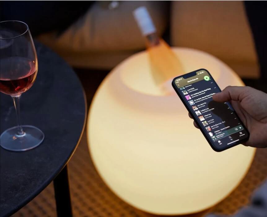 Kooduu Sphere Brass je gladek in zaobljen Bluetooth zvočnik in LED svetilka z možnostjo zatemnitve z vgrajenim držalom za pijačo v enem. Sferična oblika enakomerno porazdeli toplo zatemnjeno svetlobo in uravnotežen zvok zahvaljujoč tehnologiji Bright Sound Technology™ podjetja Kooduu ter geometrijskemu in minimalističnemu pristopu Jacob Jensen Design.