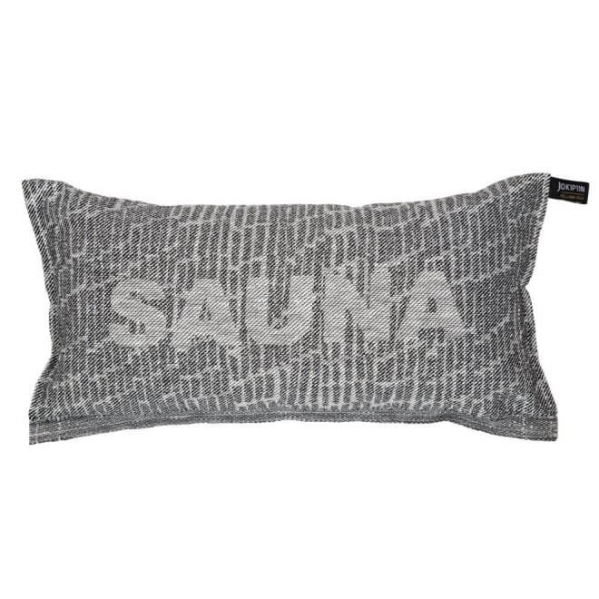 Vzorec blazine za sauno SAUNA spominja na lesene palice, ki so igrivo razporejene na leseni deski.
