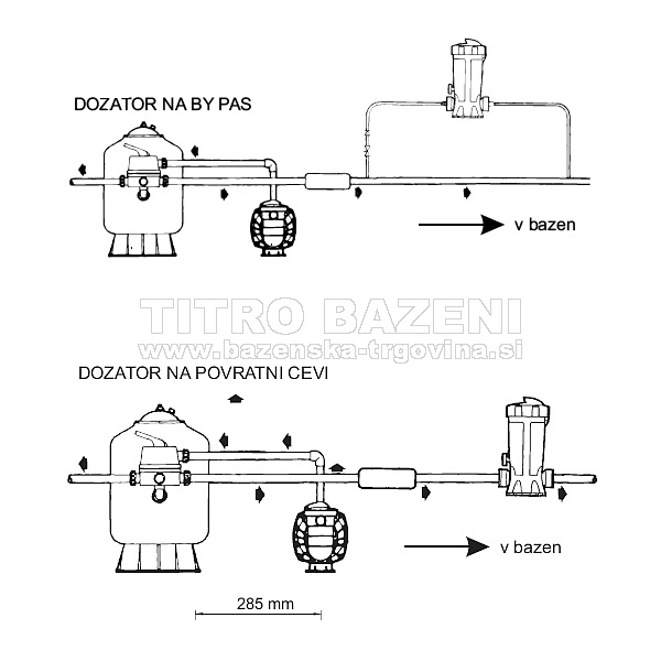 Priključki: za cevi fi 50 - dozator je opremljen z dvema lepilnima spojkama (holandci)