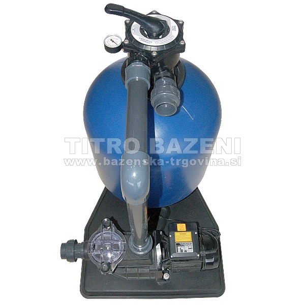 Filter komplet BLU TOP je sestavljen iz podstavka na katerem sta filter in bazenska obtočna črpalka s predfiltrom ASTRAL SENA. Filter je opremljen s šest stopenjskim TOP ventilom. Priložen je komplet za spojitev filtra s črpalko.
