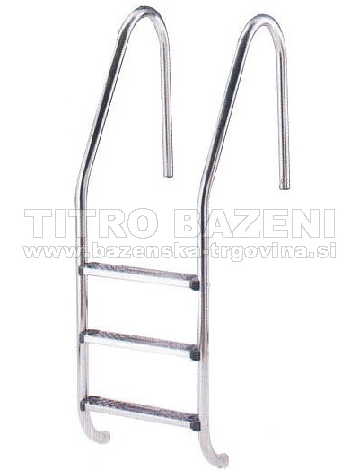 INOX lestev standardne širine namenjena za vstop in izstop iz bazena je narejena iz cevi premera 43 mm in inox prečkami, vse v kvaliteti AISI 316.