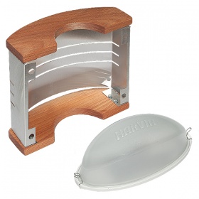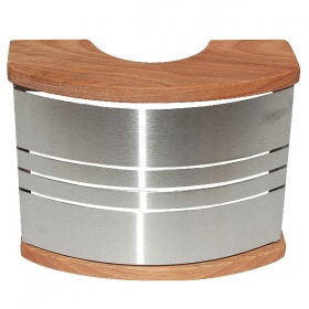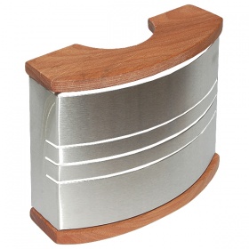 Paket vključuje stekleno luč in leseno ohišje v kombinaciji z nerjavečo kovino.