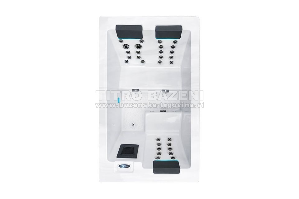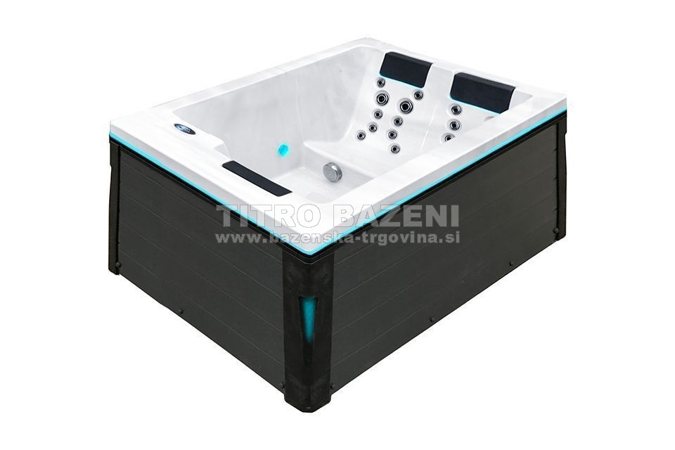 Masažni bazen je primeren za 3 osebe. Odlikuje ga moderen linijski dizajn.