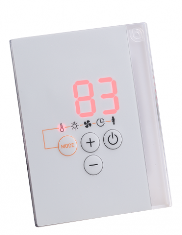 Elegantna oblika digitalne nadzorne kontrolne plošče Sentiotec PRO-D3 z LED zaslonom in "soft touch" gumbi za kombinirane (finske/bio-zeliščne) savne omogoča upravljanje številnih električnih naprav v savni, ne le peči.