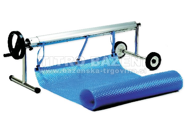 Navijalec je opremljen z navijalnim ročajem in dvema kolesoma, ki omogočata enostaven odmik navitega pokrivala od bazena.
