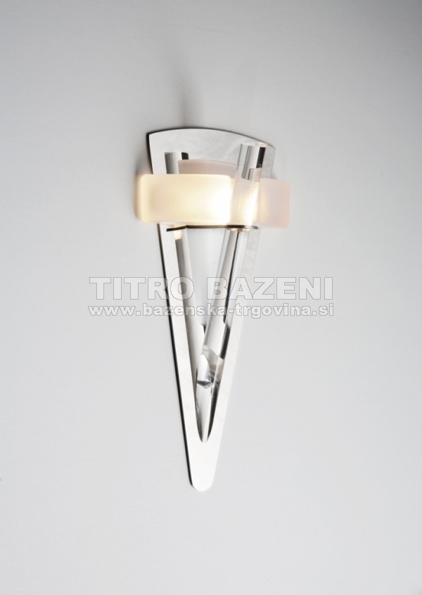 Narejena je iz brušenega nerjavečega jekla, akrila in satenskega stekla, ki oddaja toplo belo svetlobo.