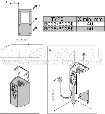Peč se enostavno namesti na steno, lahko zelo nizko nad tlemi, saj s tem dosežemo segrevanje tudi na nižjem delu savne, kar vam dodatno segreje noge.