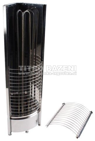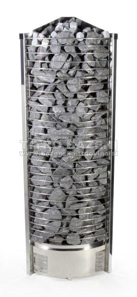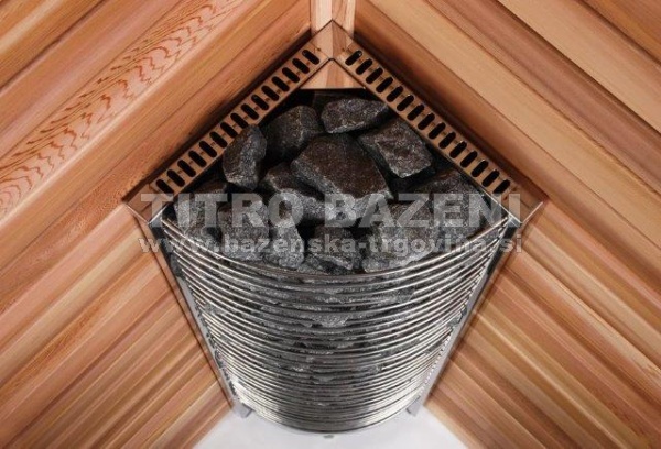 Peč je zgrajena v obliki kotnega stolpa, preko celotnega čelnega polkorožnega dela je vidno kamenje. S tem nam je omogočeno polivanje vode z vrha ali od strani, s čimer lahko v savno po želji sprostite še več vlage. Polivanje vode po zgornjem delu peči v savno sprošča intenzivno vlago, medtem, ko polivanje spodnje polovice kamenja sprošča milejšo paro.