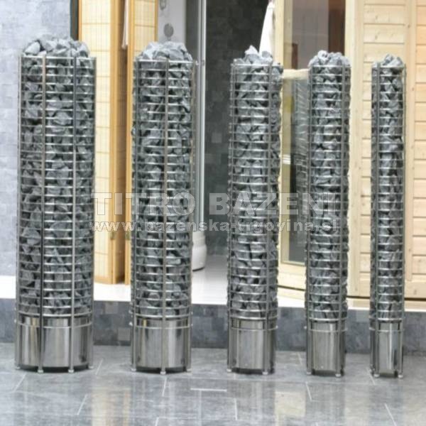 Peč je zgrajena v obliki stolpa, preko celotne peči pa je vidno kamenje. S tem nam je omogočeno polivanje vode z vrha ali od strani, s čimer lahko v savno po želji sprostite še več vlage. Polivanje vode po zgornjem delu peči v savno sprošča intenzivno vlago, medtem, ko polivanje spodnje polovice kamenja sprošča milejšo paro.