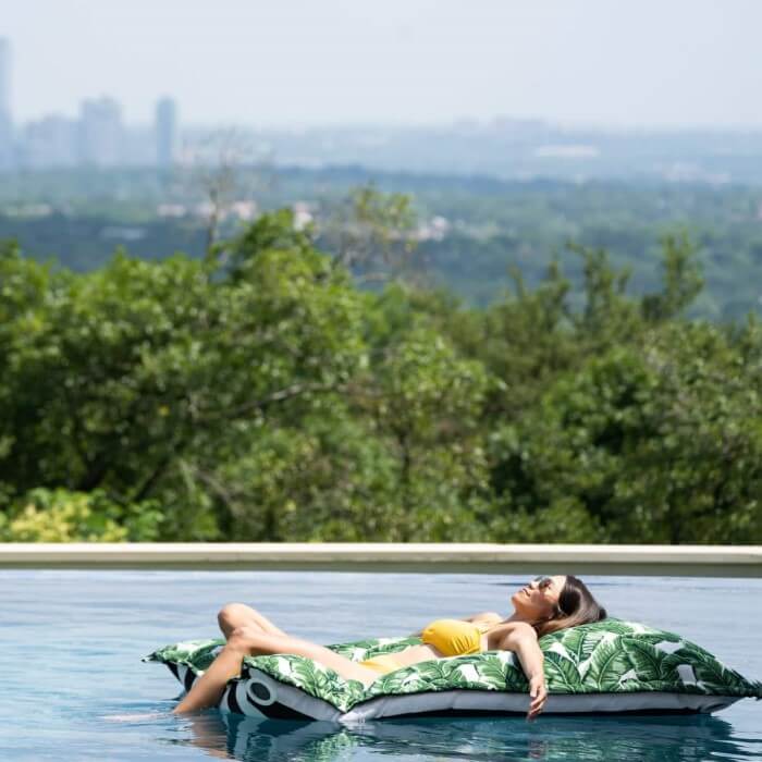 Z edinstveno plavajočo bazensko blazino Laze Pillow lahko preskočite nevšečnosti z napihovanjem blazine in se sprostite kjerkoli želite. Samo odpakirajte plavajočo blazino za bazen in se sprostite.
