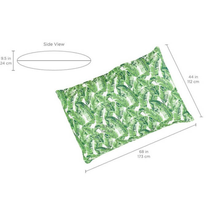 Blazina je izdelana iz ekskluzivnih tkanin Ledge Lounger za navtiko, ki zagotavljajo obstojnost, kljub izpostavljenosti soncu in okolju – bazena, jezero, plaža. Primerna za vse vrste bazenov (klor, brom, sol, ozon…).Ta blazina za bazen je izdelana iz najmočnejših materialov, odpornih na plesen in bledenje, zato ste lahko brez skrbi, da bo vzdržala vse vremenske razmere med zabavami ob bazenu, izleti na plažo in sproščujočimi dnevi na travniku.