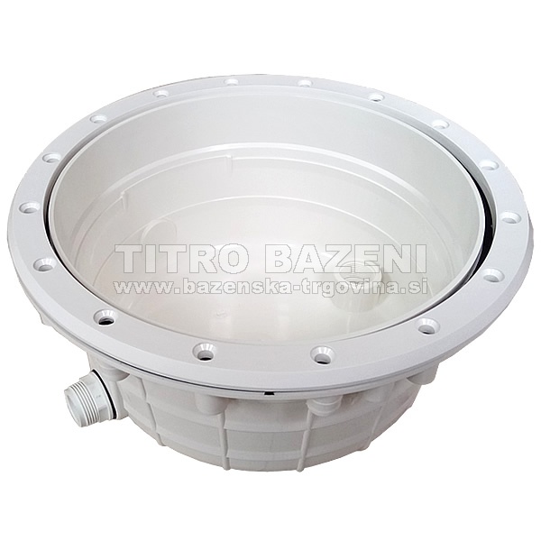Standardno ohišje podvodnega reflektorjaASTRAL iz ABS za vgradnjo v zidane stene bazena z plastično uvodnico za liner bazene. Komplet vsebuje prirobnico in tesnila za liner bazen.