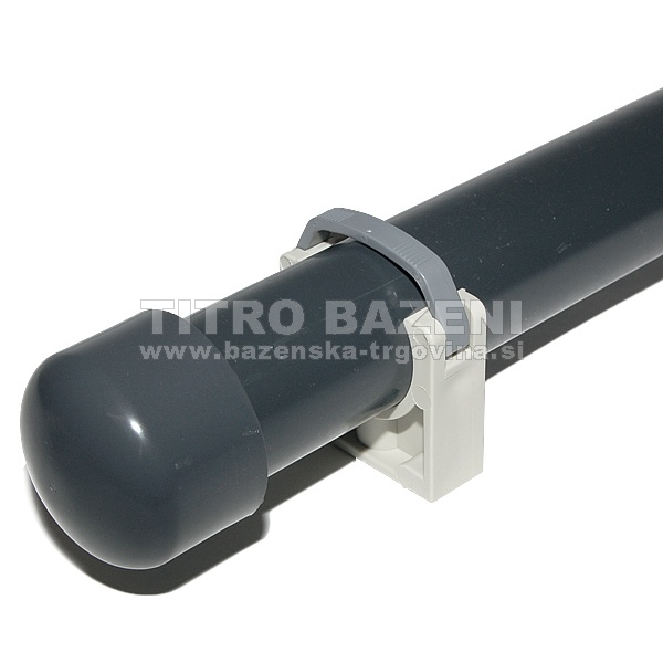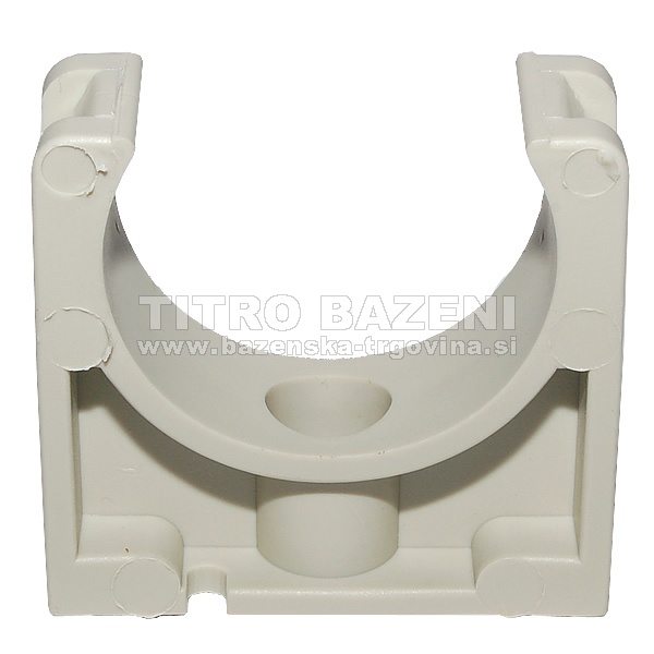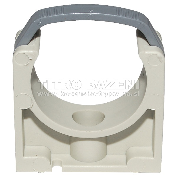 Močen nosilec PVC cevi, vključno z zaponko (objemka-sponka) . Uporaben povsod, kjer želite cevne instalacije pritrditi v tla, steno ali strop strojnice.
