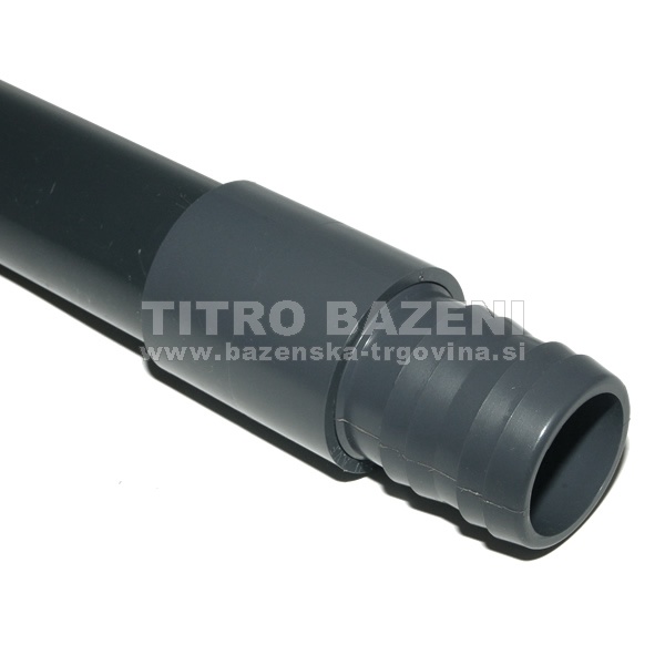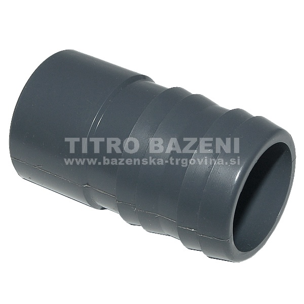 PVC smrekica fi 50 za gibljive cevi in zunanjim lepilnim priključkom fi 50. Uporabna povsod kjer je potreben spoj med trdo PVC instalacijo in mehko gibljivo cevjo fi 38 (gumi cev ali plastične polietilenske cevi, itd...). Na primer za priklop smrekice na ventil z lepilnimi priključki potreben za praznjenje bazena ali drug priklop kjer je potrebno smrekico vlepiti v PVC lepilni spoj. Uporablja se tudi pri povezavah z gibljivo cevjo med črpalko in filtrom, itd...