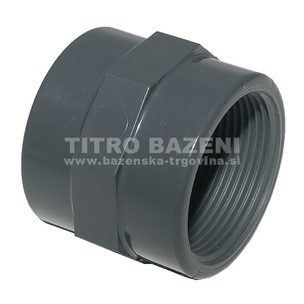 Standardna PVC spojka z notranjim lepilnim priključkom, na drugi strani pa ima notranji colski navoj.