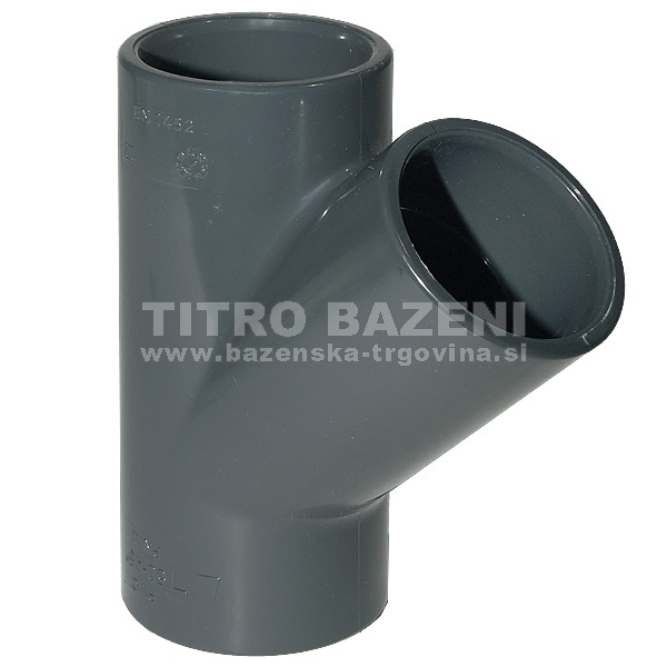 Poseben PVC Y kos 45 stopinj z notranjimi lepilnimi priključki. Uporaben predvsem pri cevnih instalacijah, ki vodijo od črpalke k bazenskim napravam na več končnih priključkov. Na primer pri masažnih napravah, ki imajo v steni bazena več masažnih šob, ali pa iz ene črpalke na "dvojni" protitok (protitok z dvema šobama). Ravno tako je tak Y-kos uporaben na sesalnih delih med bazenom in črpalko, v primerih, ko je v bazenu več "sesalnih priključkov", ki se spajajo v eno cev, ki vodi na sesalni del črpalke.