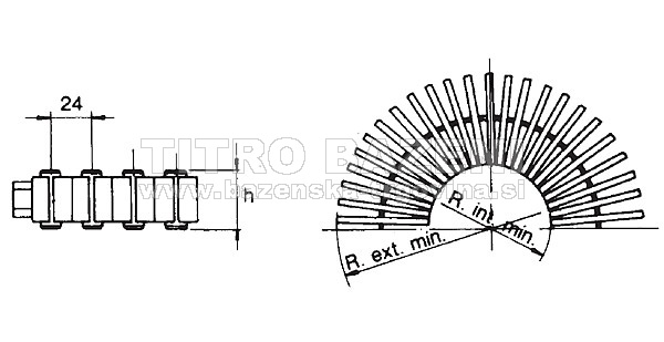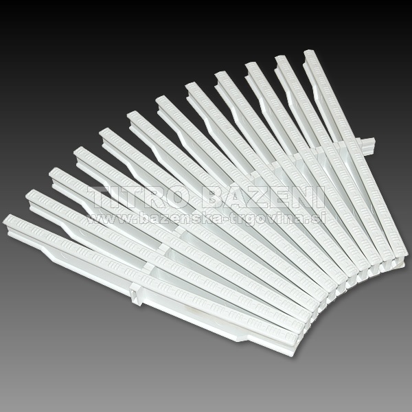 Rešetka za krivine se sestavlja iz posameznih členov, ki se spajajo samo v eni točki na sredini posameznega člena. Zaradi tega se rešetke za krivine lahko poljubno namešča v prelivne kanale s krivinami različnih radiusov.
