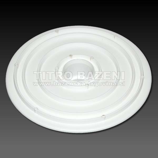 Sesalni krožnik za skimmer ASTRAL ECO za montažne in druge bazene. Na vrhu je priključek za sesalne cevi fi 30 ali 38 in končnik za sesalno cev.