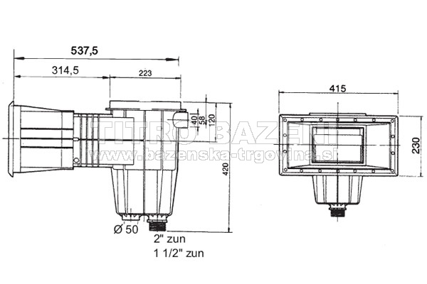 Opomba: Skimmerje je potrebno povezati s čistilno napravo s primernimi povezovalnimi cevmi in spojnim materialom, zato si oglejte še rubriko: PVC spojni material