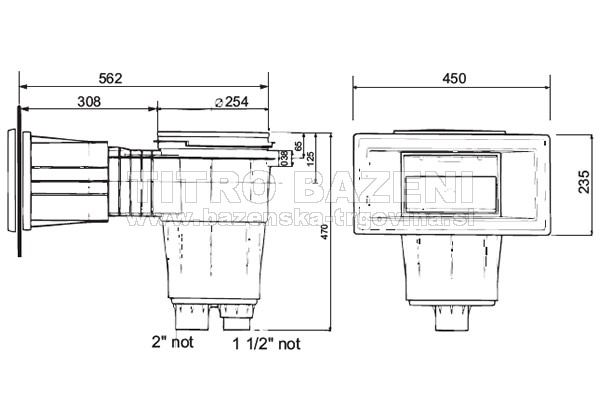 Opomba: Skimmerje je potrebno povezati s čistilno napravo s primernimi povezovalnimi cevmi in spojnim materialom, zato si oglejte še rubriko: PVC spojni material