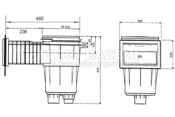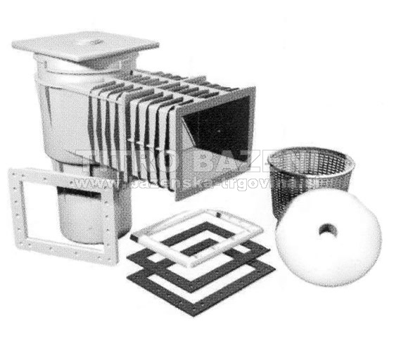 Opomba: Skimmerje je potrebno povezati s čistilno napravo s primernimi povezovalnimi cevmi in spojnim materialom, zato si oglejte še rubriko: PVC spojni material