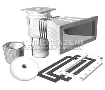 Opomba: Skimmerje je potrebno povezati s čistilno napravo s primernimi povezovalnimi cevmi in spojnim materialom, zato si oglejte še rubriko: PVC spojni material
