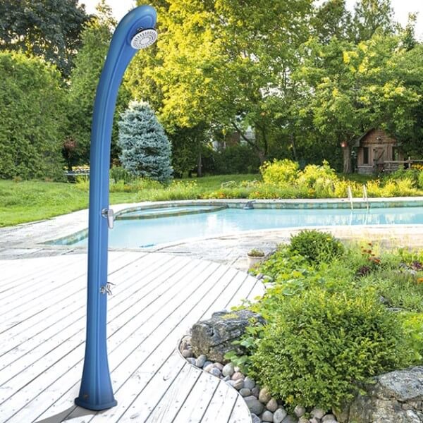 Priložen je set za montažo tuša na podlago. Opremljen je s priključkom za vrtno cev, tako da ni nujna fiksna montaža na določeno mesto, temveč se tuš po končani kopalni sezoni lahko hitro pospravi.
