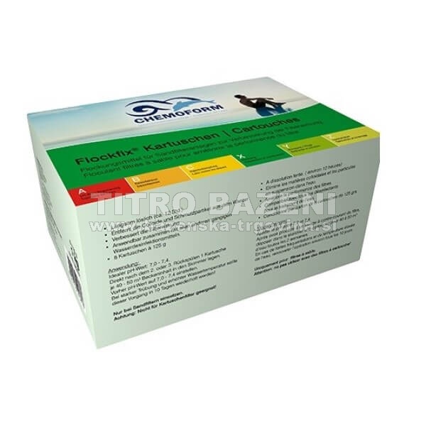 Flockfix kartuše so sredstvo za kosmičenje in odpravljanje motnosti vode v plavalnih bazenih s peščenimi filtri v obliki počasi topnih stisnjenih tablet spojenih v eni kartuši.