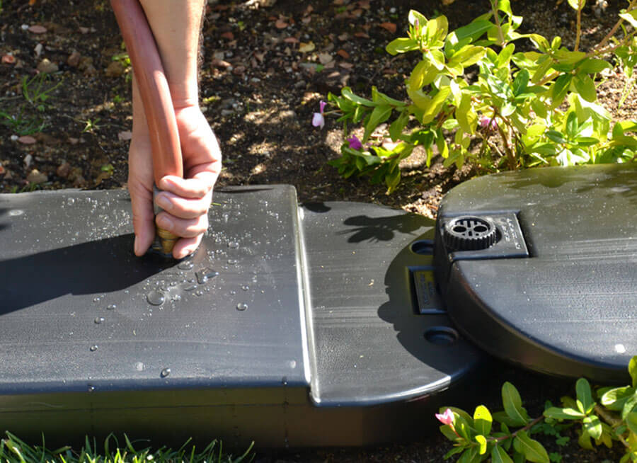 Cena enega segmenta vključuje: 1 x mrežo, 4 x bazne dele, ki jih obtežite z vodo, vezne elemente in zapiralne čepe.