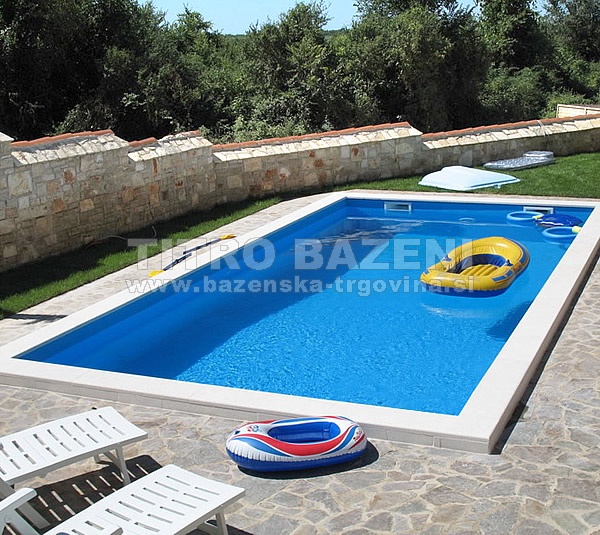 Vgradni bazen iz stiropor zidakov ter s folijo debeline 0,8 mm, višine 150 cm. Izdelava bazena je hitra in enostavna. Komplet opreme zadošča za kvalitetno izdelavo bazena. Bazen lahko dodatno opremite z veliko dodatne opreme.